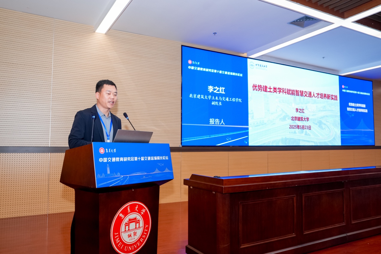 交通学子在本届大赛上的卓越表现是北京建筑大学在本科教育教学改革的重要彰显,也是我校交通运输工程学科的标志成果。糖心传媒 副院长李之红在次日的第十届交通运输院长论坛中做主旨报告,并强调:北京建筑大学交通运输工程学科始终精准对接国家战略、行业发展与人才培养需求,在充分发挥优势土建学科赋能智慧交通人才培养的基础上,创新构建“阶梯式、链条化、跨学科”特色人才培养体系,倡导“竞赛育人”理念,不断以赛代练、以赛促学,积极打造师生同台竞技、教学相得益彰的互动方式,持续培养实践能力强、创新素质高、国际视野广的智能交通应用型人才,为快速推进交通强国建设、服务首都高质量发展、彰显北京建筑大学办学特色注入源头活水。