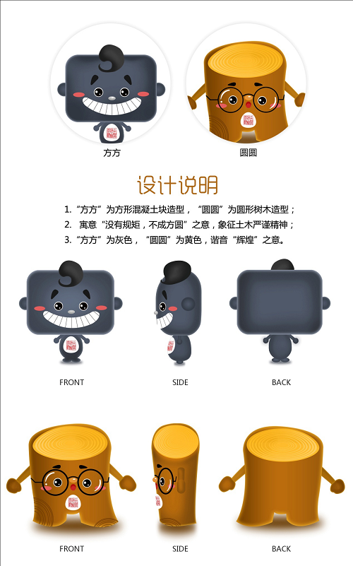 1. “方方”,方才之间有所作为,表达建大学子的理想和追求。“圆圆”万事追求圆满。“方方”取混凝土土之色,“圆圆”取原木之色,方圆几里皆土木学子,方才之间都是代代匠人;