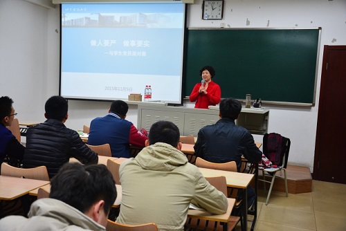 高春花同志以“做人要严,做事要实”为题与材料与岩土工程和结构工程研究生党支部进行交流。高春花同志为其他高校的案例为研究生讲述学生身边的事。她将理论融入实际的学习生活中,使我们更加深刻的认识到“三严三实”的重要性,这种重要性不只局限于党员干部也是对于基层党员学生党员的要求,这种深入浅出教授方式受到党员同学们的一致赞赏。“三严三实”也是党员领导同志密切联系群众的重要保证,各级党员领导同志应当坚持密切联系群众,坚持艰苦朴素的作风,把党的群众路线落到实处也就保证了党的政策方针路线的具体实施。