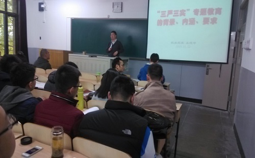 王德忠同志从“三严三实”专题教育的背景、内涵和要求与防灾减灾和交通与道桥工程研究生党支部进行讨论。当前我国处于战略机遇期、改革攻坚期、破除藩篱期,国内外形式错综复杂,各级领导干部面临着各种诱惑,稍有不慎就会落入万丈深渊,因此,必须坚持改进作风,密切联系群众。俗话说“水能载舟亦能覆舟”,唯有各级领导干部都按照“照镜子、正衣冠、洗洗澡、治治病”的群众路线教育实践活动总体要求改进作风,才是王者之道。而“三严三实”就是对群众路线及作风建设的进一步升华,也是其具体方法。从“三严三实”进一步向前看,是通过每个人对自己严格要求,追求进步,从而使我们整个中华民族充满朝气,走向复兴,早日实现“中国梦”——即为世界作出更多更大的贡献。