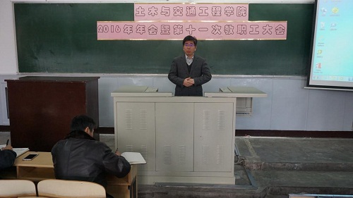 2015年的工作进行了全面总结。同时,对2015年工作中存在的问题进行了分析、对2016年的主要工作进行了展望。 最后,他鼓励全体教职工积极投入到学院各项事业的建设和发展中,在2016年的工作中取得更加优异的成绩。
