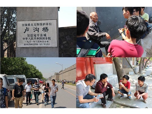 在抗战胜利70周年之际,为纪念抗战胜利并透过抗战的历史背景深入了解红色景区周边的交通情况。北京建筑大学交通工程专业学生党支部书记刘猛老师和教师党支部书记李之红老师于2015年5月17日带领着学生党员、积极分子、大一新生等开展了红色景区宛平城周边交通状况调研的活动。