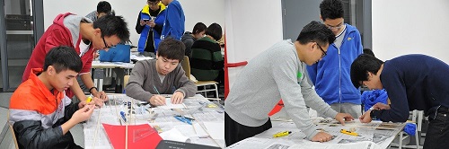 模型制作环节于10月25日在基础教学楼举行,全部参赛队伍三五成群在活动一早便聚集在模型集体制作教室,他们积极讨论、精确绘图、切割材料、精心连接……每个人热情都很高,因为他们知道,今天的模型就是明日的大桥,今天的比赛就是明日的责任与担当。