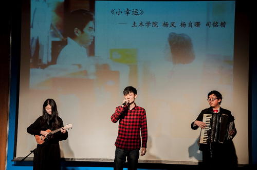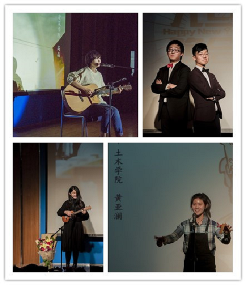 此外,电信学院李雪东带来民歌串烧《姑娘我爱你》和《青藏高原》,激情的曲调震撼人心,跳动的音符演奏着青春的活力;环能学院的杨枫楠带来颇具中国风的古筝演奏《丰收锣鼓》,琴瑟和音,余音绕梁;建筑学院郭晓宇同学的肚皮舞表演婀娜多姿、青春动感。与此同时,晚会还邀请观众进行了两次现场互动游戏,传统的萝卜蹲和绕口令被主持人和热心观众玩出了新花样,现场掌声不断笑声连连。