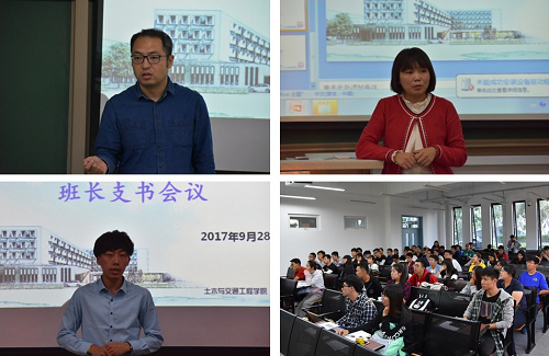 学院党委副书记车晶波强调,目前正处于准备召开十九大的关键时期,做好安全稳定和学风建设是近期工作的重中之重。车晶波在动员会上指出:其一,要全面排查安全隐患,要定期及时清理宿舍垃圾,注意用电安全,要杜绝私拉电线、插销板的现象,离宿前要仔细检查,务必做到关灯断电;建议在校学生要尽量减少或避免夜间出行;呼吁学生在校用餐,注意身边的食品安全问题。其二,要做好新生引航工程的各项主题活动,抓好课前课后自习的具体落实,严格要求全体在校生遵守课堂纪律,以“学霸联盟”的学生党员为榜样,广泛开展课堂笔记和课后作业的评比活动。