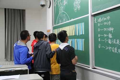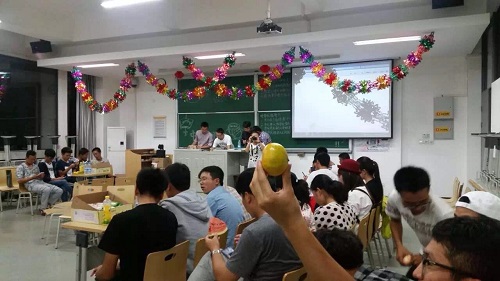 经过紧张而有序的准备,活动以抽签的形式自由组成小组,在乒乓球接力赛、蒙眼走迷宫、成语你画我猜、踢毽子的环节依次展开,当到达最后一关的时候,一个个之前征集的关于家乡中秋习俗、中秋美食、家乡美景的小题目在最后一个闯关教室等待着每一组同学,通过家乡美的答题活动后,同学们又围坐在教室,借着2015年中秋的夜色、水果与月饼,在轻松愉悦的氛围内畅谈了专属自己的北建大时光与土木年华。