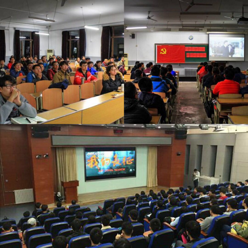 党委积极推进“两学一做”学习教育,同时还组织学生党员和入党积极分子观看了《我的长征》红**。这些活动让党员们更加深入的学习了长征精神,对长征精神有了更深一层次的认识与体悟。
