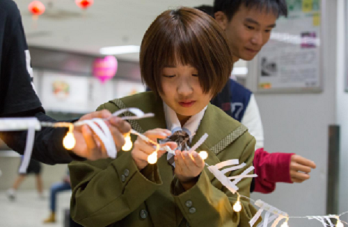 党委副书记车晶波、团委书记刘倩、辅导员苑泉、李辉受邀参加,与一百余名学生联欢。