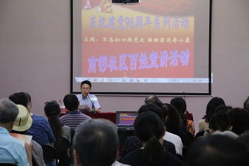 党课结束之后,秦岭参加了社区庆祝建党96周年百姓宣讲活动。