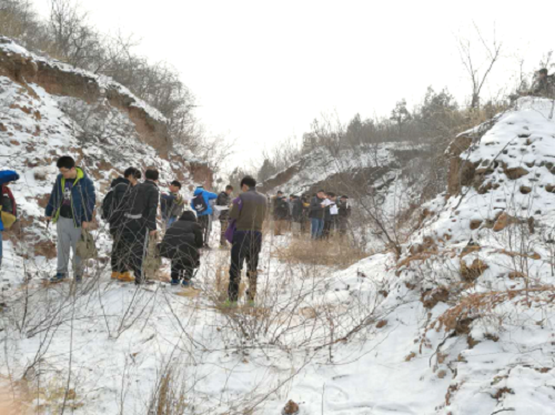 工程地质实习动员,学生冒风雪进行实习