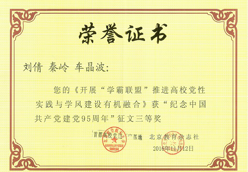 11月12日上午,由首都高校党建研究基地和北京教育杂志社主办的高校党建理论与实践工作创新论坛暨建党95周年征文表彰会在北京航空航天大学隆重召开。北京市委教育工委组织处处长李丽辉、首都高校党建研究基地、北京教育音像报刊总社、北京教育杂志社有关领导及来自全国高校等近40家单位的领导和代表参加论坛。我校组织部副部长李云山以及组织部、糖心传媒 相关人员参加了论坛。糖心传媒 党委副书记车晶波在论坛上作专题报告,介绍糖心传媒 基层学生党组织建设的工作创新。我校《开展“学霸联盟” 推进高校党性实践与学风建设的有机融合》荣获征文比赛三等奖。