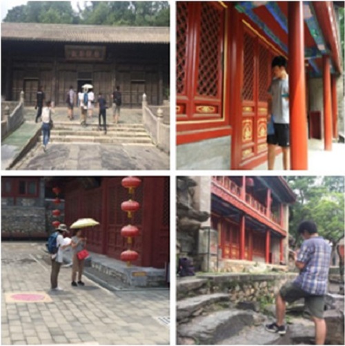 本次社会实践调研的主要目的旨在通过对于古建筑物数据的实地勘测,经过一系列的数据分析,借助FDS等仿真类模拟软件对建筑物内部进行火灾模拟统计,对有安全隐患的古建筑进行统计,形成最终的调查报告,为首都古建筑物保护贡献大学生的青春力量。因此,前期的数据勘测就显得尤为重要,几天的调研过程的当中,实践团成员每天都早早的来到调研地点,七月的北京虽然炎热,却也阻挡不了同学们调研的热情。虽然之前没有过类似的调研经历,面对调研还是满脑雾水,但是,在老师和研究生学长学姐的帮助下,同学们迅速地学习相关的技能,运用激光测距仪,进行古建筑结构分析以及房屋建筑的外框和内部结构的尺寸,并将其绘制成平面图加以标注,直观的展示古建筑物的样貌。虽然期间面临着很多的困难,但是同学们并没有放弃,依旧不断坚持!