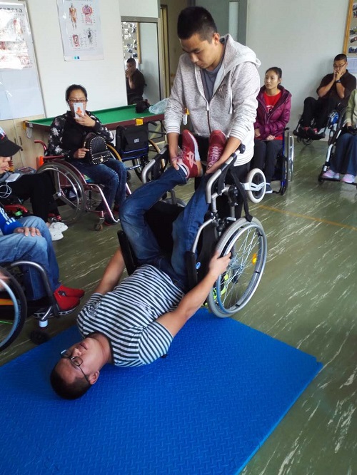 在专业医护人员的指导下,志愿者们协助伤残人士进行全身的力量训练,轮椅与其他生活设施的过渡训练,同时配合简单的生活技能训练。其间志愿者们时刻在旁保证伤残人士训练中的安全,并细心询问他们的身体状况,及时关注他们的身体变化,使伤残人士在身体机能得到改善的同时,心情也逐渐好转。训练结束后,志愿者们亲切地与伤残人员交流,使他们感受到建大学子的友善与关爱,使其恢复交际能力,重拾信心。