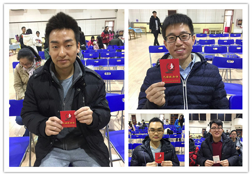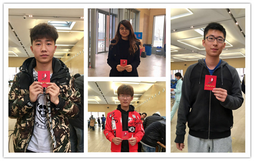 献血后,每位志愿者拍照留念,并由青协成员为他们分发证件。