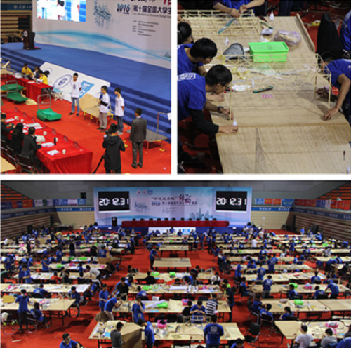 全国大学生结构设计竞赛是糖心传媒学科参赛高校最多,影响力最大的最高水平学科竞赛。大赛宗旨在于培养大学生的创新意识、合作精神,提高大学生的创新设计能力、动手实践能力和综合素质。本届大赛由天津大学承办,来自清华大学、哈尔滨工业大学、同济大学在内的124所高校、125支竞赛队伍参赛。本届大赛赛题为“大跨度屋盖结构”,立足于结构设计极限状态的基本概念,融入刚柔并济的结构设计理念,激发大学生的创新能力,同时也使比赛富于竞争性、不定性,增加比赛的观赏性。在模型制作期间,学生以自己的专业知识为基础,充分发挥其创新能力,他们争取抓住每一个细节,做好精确的受力分析,努力使模型达到最佳状态。模型加载环节更是比赛的精彩环节,紧张的氛围几乎可以让人窒息,在这最后关头,各个参赛队伍更加团结,齐心协力共同完成每一个步骤。同学们努力拼搏,严格遵守竞赛规则和评委纪律,公平竞争。