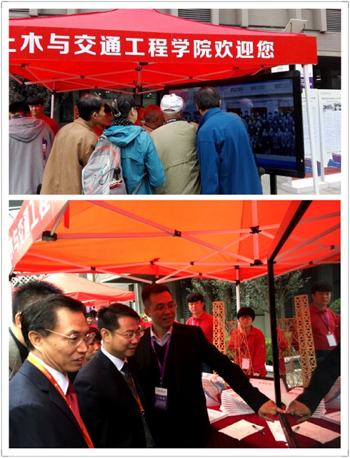 在学院楼前特别设置了新老土木楼融汇在一起的背景墙,供返校校友们合影留念。虽然时间在改变,但不变的是土木人积极向上的精神,不变的是土木人心中永远燃烧的激情。存照为证,土木学子不会忘却母校的培育之情。