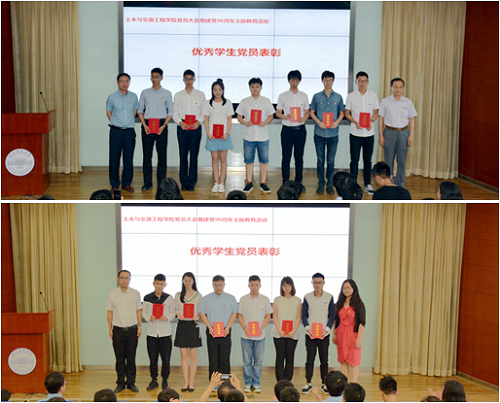 接下来的环节中,优秀学生党员代表发言,总结基层党建工作并回顾大学的成长历程。先进党支部代表防灾减灾工程研究生党支部书记韩嘉兴在发言中提出,通过建设学习型、实践型、服务型和科研型党支部,树立清风正气,营造优良学习生态。优秀学生党员李杉杉从学生党员和学生干部做好模范带头作用谈起,做好学风院风班风的引导,敢于说话、敢于做事。优秀学生党员卢嘉茗说到,本科四年是丰富多彩,机遇与挑战并存,选择与坚持并存,面对迷茫和困惑,应该坚持梦想、脚踏实地,为自己和建大的未来,砥砺前行。