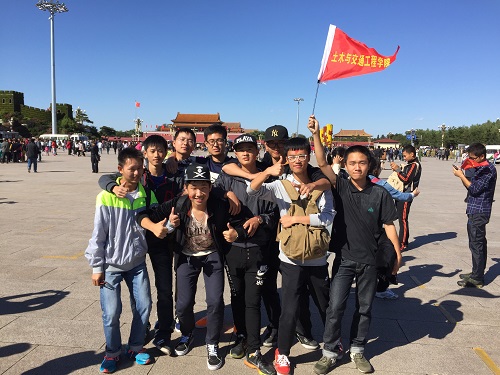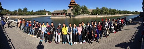 辅导员秦岭带领32名外地生和8位藏、回、满等少数民族学生一起畅游北京。