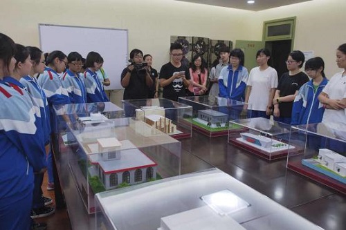 的学生结合专业实践教学制作而成。同学们通过前期调研、三维立体云图分析、测量、画图、卡纸制作、喷漆等工艺环节,等比例缩放,最终将生动的建筑模型跃然成形。宋玉博同学从抗战建筑模型的历史意义、比例特征、制作过程等方面依次向同学们进行了详细的讲解。