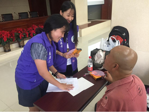 调查工作开始,同学们有序地下发问卷。在确认每份问卷都填好之后再将试卷收回,同时,为了表示对参与本次调查的受访人以感谢,问卷填写结束后会赠送精美的小礼品。问卷填写期间,受访人也会遇到很多不解的问题,学生们更是耐心的协助受访人填写好问卷,还有人会像学生阐述一些他们遇到的问题,比如无障碍交通设施的老化严重,无人管理等现状,同学们积极地记录下来,为日后问卷的完善工作做好准备。