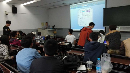 在培训会开始,专业技术人员先为同学们进行了3D打印技术知识普及,为大家介绍了3D打印金属的起源、定义、打印原理、打印类别等;随后,工程师以一个打印实例为同学们详细讲解了3D打印技术的步骤,并将他们带来的4台3D打印机与同学们的笔记本连接,为同学们演示一个金属托盘的3D打印过程,各种参数的调配设置;最后,工程师还向同学们介绍了打印过程中的注意事项以及可能出现的问题。在培训会的最后环节,到场的同学们现场操作3D打印技术,伴随着一阵嗡嗡声,机械喷头开始不停移动,一件做工精细的塑料模型很快就打印了出来,这让同学们惊叹于3D打印技术的魅力。近2个小时的培训在同学们充满兴趣的学习中圆满完成。
