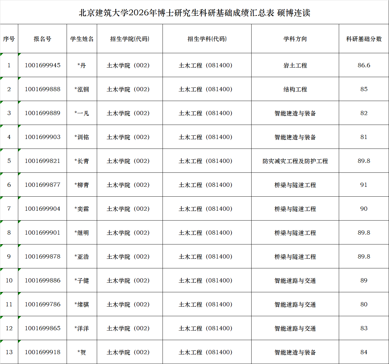 北京建筑大学2026年博士研究生科研基础成绩-硕博连读.xls