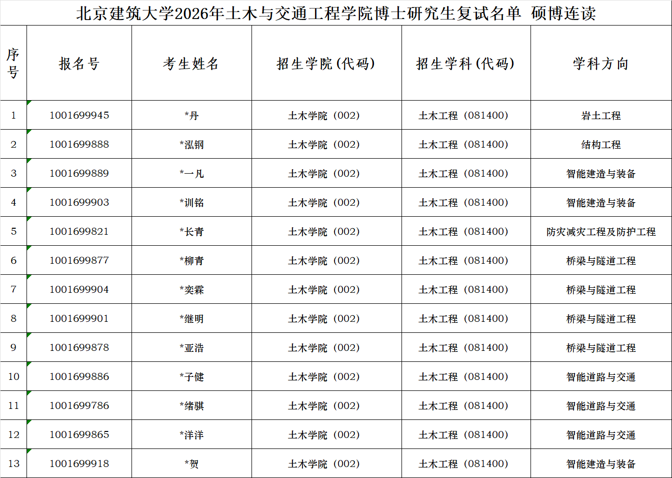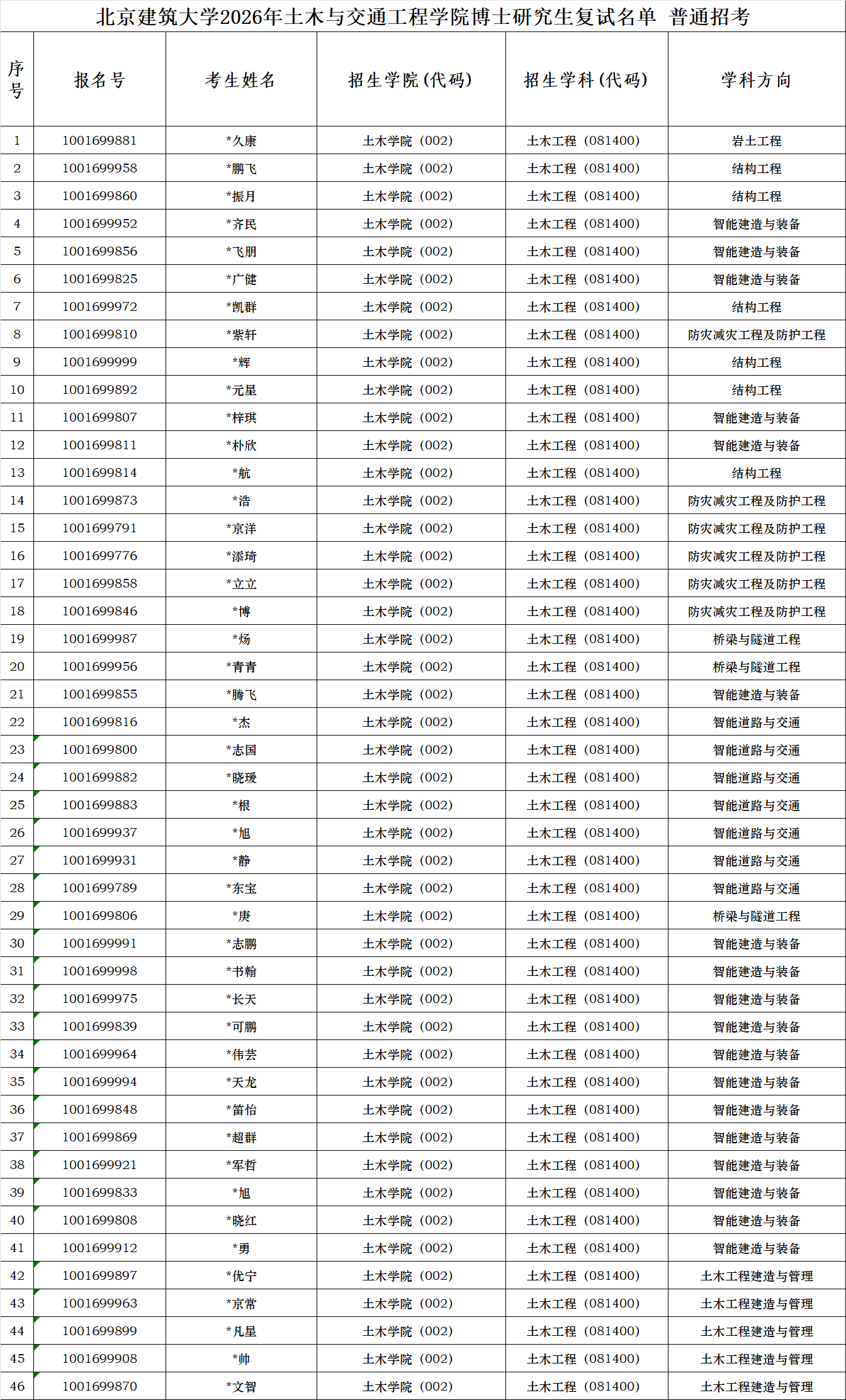 北京建筑大学2026年糖心传媒 博士研究生复试名单