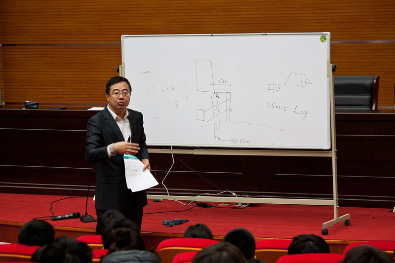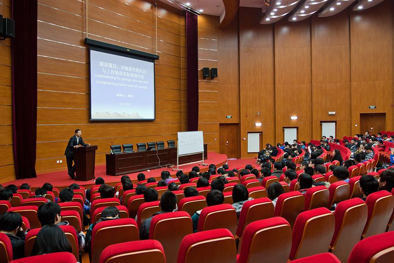 金奕总工首先从一些有趣的地质学现象说起,来引发同学们的兴趣。他从中国的大河文明;中国与巴基斯坦的高山作用;海洋文明,农耕文明,游牧民族的差异等几个地质现象谈起,阐释了地质对中国及世界的政治,文化,历史的影响。随后,金奕总工介绍了青岛大沽河基坑处理,奥运村边坡塌方,盾构管片开裂,曲阜会展中心减桩长等他本人处理有关地质的工程案例。
