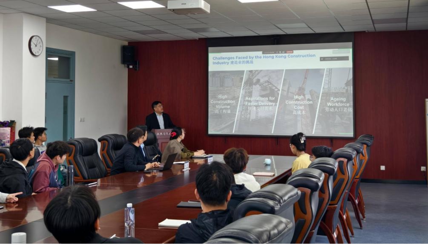 随后,江浩先生在土木馆为我校师生作了题为《利用组装合成建筑法(MiC)及机电装备合成法(MiMEP)实现高效与智能建造》的学术报告。报告系统剖析了香港建筑行业面临的现实挑战,深入阐释了组装合成建筑法(MiC)与机电装备合成法(MiMEP)的核心技术内涵;通过结合香港典型实践案例、政策体系及资金支持机制,全面展示了模块化建造的实际应用成效,深入分析了推广过程中的关键痛点与应对策略,并总结分享了香港在模块化建造政策引导、标准体系建设、行业协同合作等方面的宝贵经验。最后,江浩先生简要介绍了ASCE大中华区分会的发展历程、组织架构以及开展的学术交流活动。整场报告学术氛围浓厚,现场反响热烈。在互动环节,师生踊跃提问,交流深入而富有建设性。与会同学纷纷表示,能够近距离领略行业专家的学术风采,既开阔了专业视野,也激发了深入研究智能建造技术的浓厚兴趣,受益匪浅。