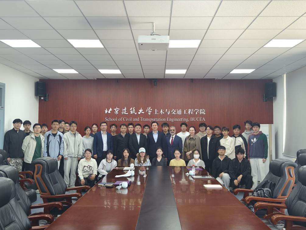 在报告正式开始前,伊廷华教授对江浩先生的来临表示热烈欢迎。他回顾了与江浩先生的深厚友谊,并特别感谢他长期以来对ASCE北京建筑大学学生分会(ASCE-BUCEA)所给予的悉心指导与大力支持。江浩先生对学院的周到安排表示诚挚感谢。他指出,北京建筑大学作为百年建筑名校,在行业内享有崇高声誉和国际影响。尤其是近年来,学校在人才培养、科学研究、社会服务、国际交流与合作等方面取得了显著进展,为国家及首都城乡建设作出了重要贡献。