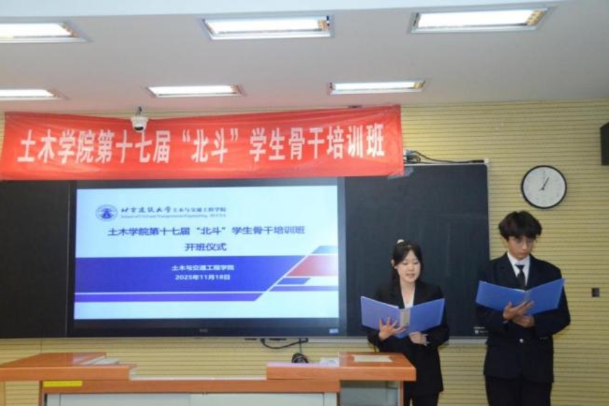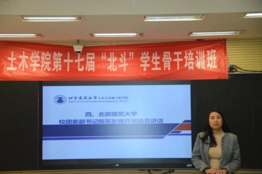 北京建筑大学团委副书记陈笑彤在开班仪式上指出,学生骨干是高校团学工作的核心力量。她强调,本次培训是学院落实立德树人根本任务的重要举措,并向学员们提出三点要求:一要筑牢思想根基,深学细悟习近平新时代中国特色社会主义思想;二要锤炼过硬本领,对标优秀榜样,推动知行合一;三要强化服务意识,搭建沟通桥梁,建设有温度的“青年之家”。她勉励学员作为未来的“大国工匠”和“基建先锋”,要以信念为舵、本领为帆、服务为桨,在推动行业高质量发展中书写青春华章。