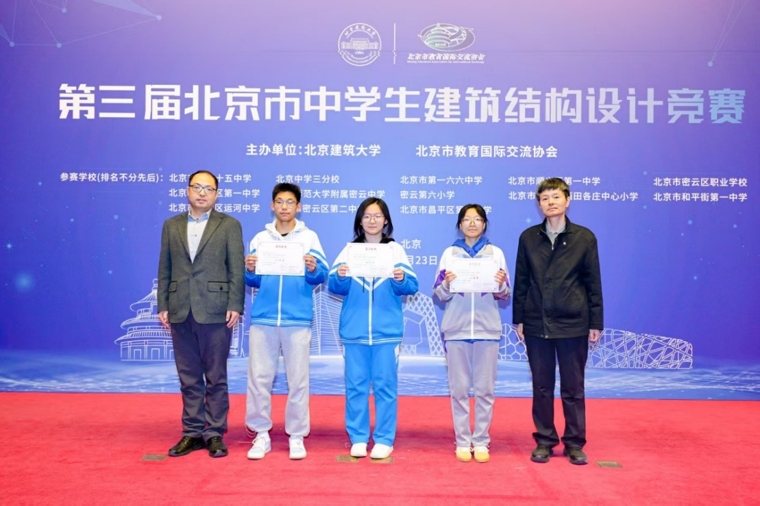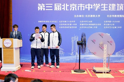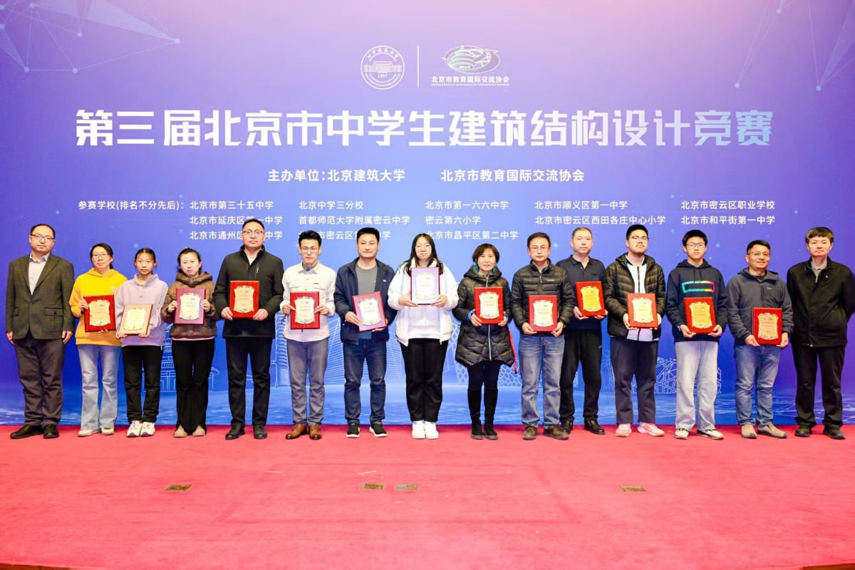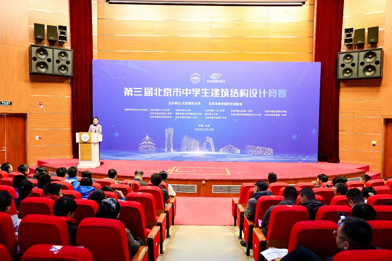 11月23日,由北京建筑大学、北京市教育国际交流协会共同主办的第三届北京市中学生结构设计竞赛,在北京建筑大学大兴校区成功举办。本届赛事共吸引了来自北京中学三分校、北京市第三十五中学等13所中小学的21支参赛队伍,共百余名师生参加。